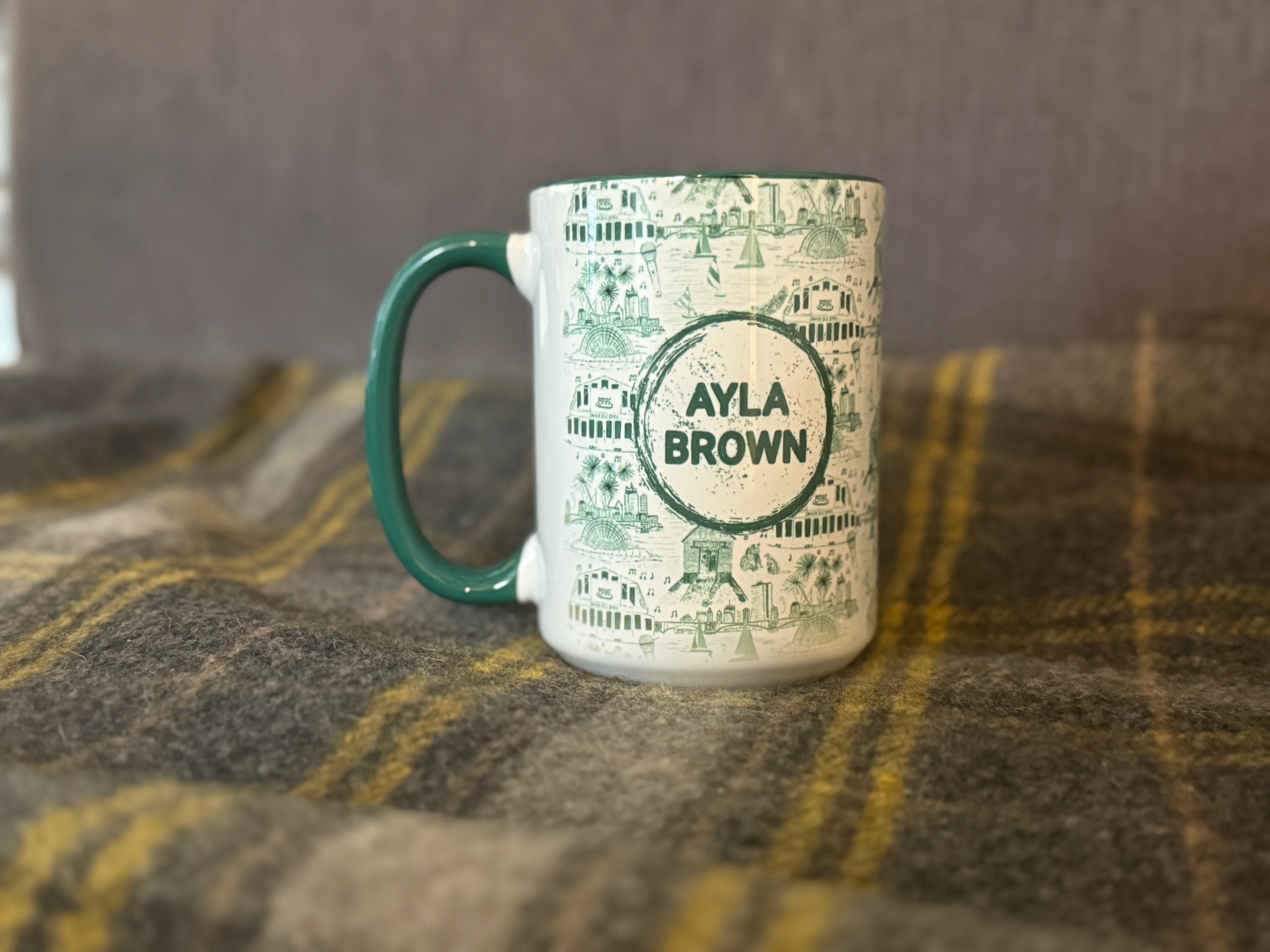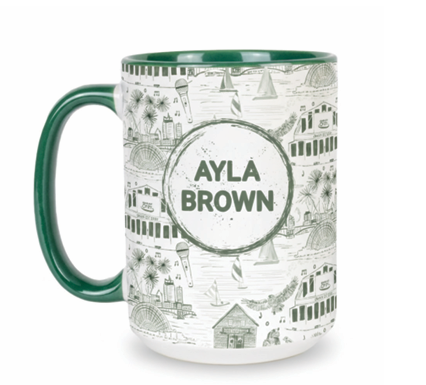 Ayla Brown toile 15oz mug for your morning pick-me-up. Fill is with coffee, tea, hot coco, or whatever flats your boat, we don't judge. But we do know that we made this mug extra big because mommas NEED that extra boost in their cup.